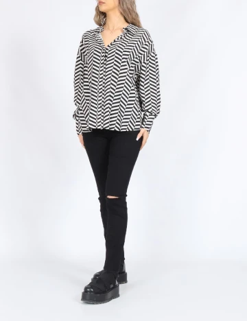 Camasa Oversize Only, alb/negru