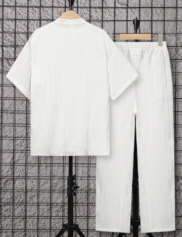Acest compleu contine 2 piese. Lungime camasa: 55 cm, pantaloni: 95 cm.
